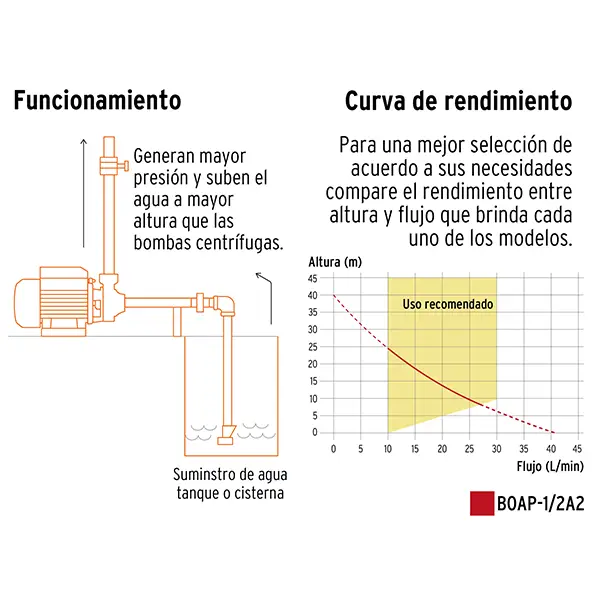 Especificaciones técnicas de la Bomba de Agua Boap-1/2A2 Truper: