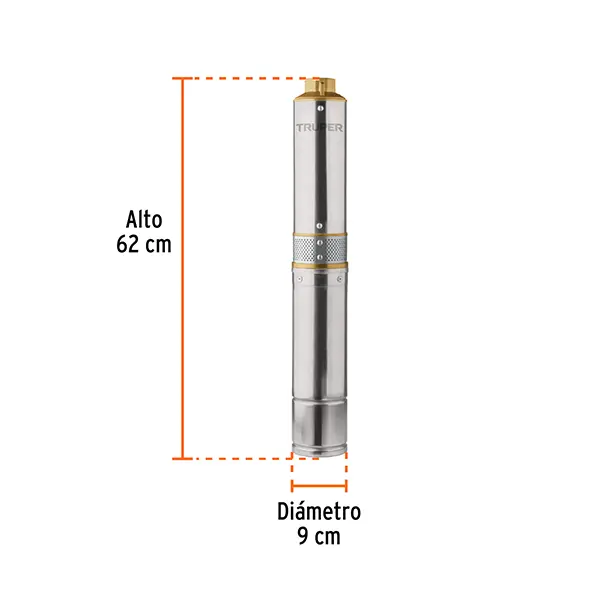 La Bomba Sumergible Truper BOS-1/2LM2 Lapicero 127V 1/2HP 30m está diseñada para la extracción de agua limpia en pozos profundos, manantiales y sistemas de riego agrícola. Su formato tipo bala, compacto y eficiente, permite una instalación sencilla incluso en espacios reducidos. Gracias a su motor de 1/2 HP con embobinado de cobre, garantiza un desempeño confiable y una mayor durabilidad frente a condiciones de uso continuo.