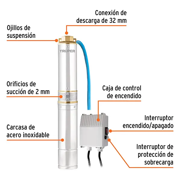 Especificaciones técnicas principales de la Bomba Sumergible Truper BOS-1/2LM2: