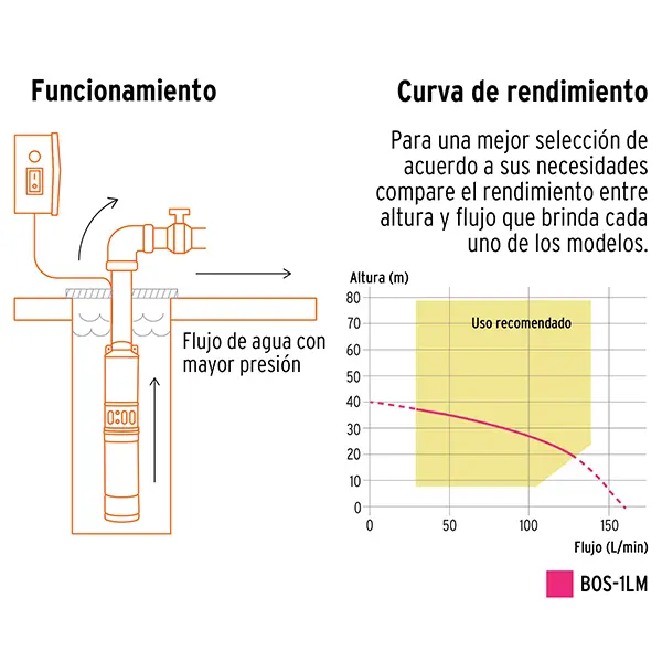 La Bomba Sumergible Truper BOS-2LM Lapicero 127V 2HP 80m está diseñada para aplicaciones agrícolas y de suministro de agua en pozos profundos y manantiales, ofreciendo potencia, durabilidad y alto rendimiento en cada operación. Su estructura en acero inoxidable brinda resistencia a la corrosión y asegura una larga vida útil incluso en condiciones de trabajo exigentes.