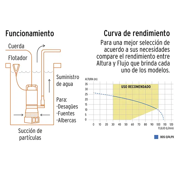 Especificaciones técnicas principales de la Bomba Sumergible Truper BOS-3/4LPX:
