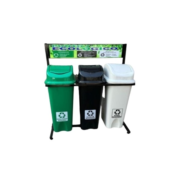 Señalización Personalizada: Finalmente, la estructura suele incluir un tablero superior con etiquetas informativas que indican visualmente qué tipo de material debe depositarse en cada recipiente.