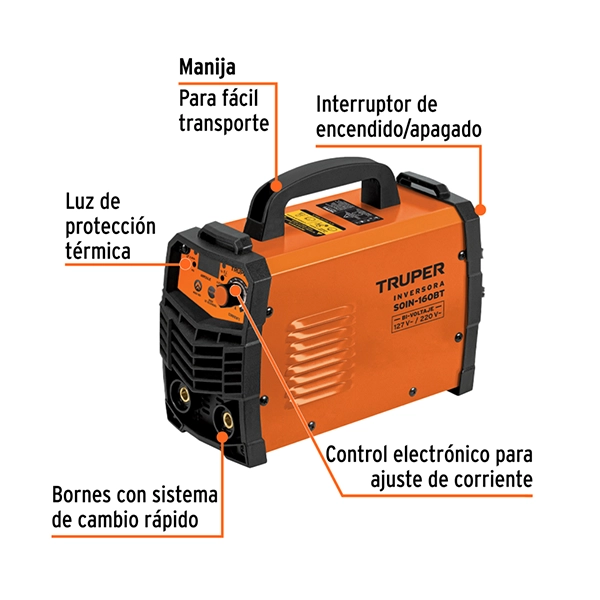 Especificaciones técnicas de Soldador Inversor 160 A Bi-Voltaje 127/220 Truper