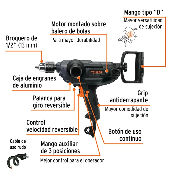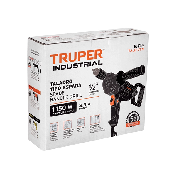 Especificaciones de Taladro Tipo Espada 1/2″ Truper 1150W 620 rpm TALE-1/2N: